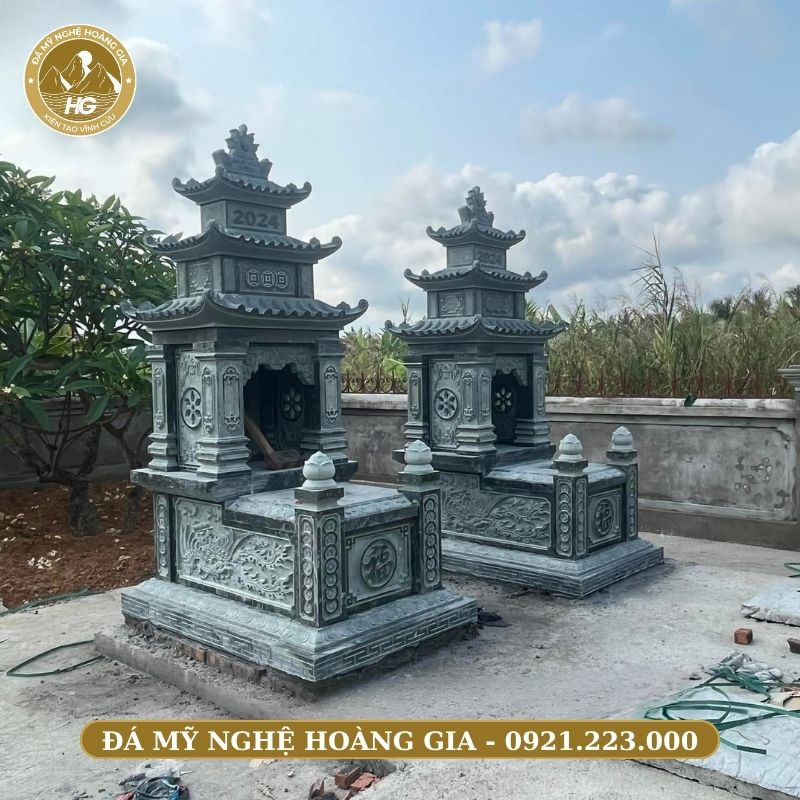 Mộ đá đôi được chế tác từ đá tự nhiên nguyên khối, gồm hai ngôi mộ đơn tương đồng ghép sát nhau tạo thành một thể thống nhất. Kiểu thiết kế này thường dành cho cặp đôi có mối quan hệ gắn bó sâu sắc trong cuộc sống. Trong văn hóa tâm linh của người Việt, việc hai cá nhân cùng nghỉ ngơi bên cạnh nhau sau khi qua đời được coi là biểu hiện của mối duyên phận bất diệt giữa họ.